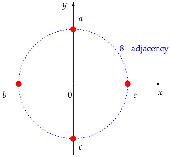 Then, X is a digital image with eight-adjacent relation in ; see Figure 1.