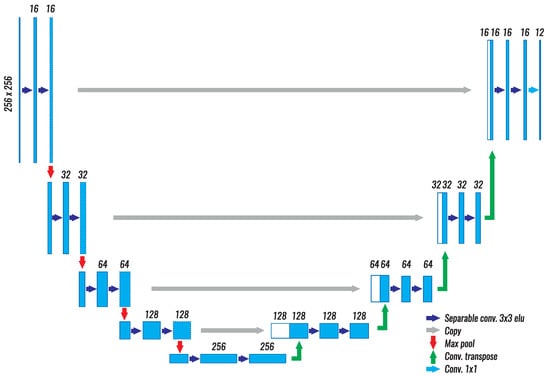 - Ronneberger, O.; Fischer, P.; Brox, T. U-net: Convolutional networks for biomedical image segmentation. In Lecture Notes in Computer Science, Proceedings of the International Conference on Medical Image Computing and Computer-Assisted Intervention, Munich, Germany, 5–9 October 2015; Springer: Cham, Switzerland, 2015; pp. 234–241. [Google Scholar]