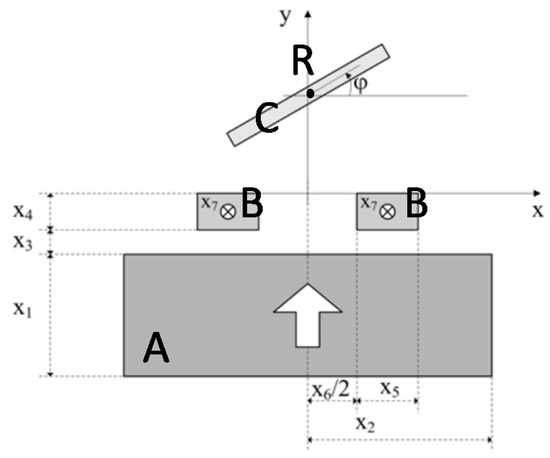 In particular, the seven-dimensional vector of design variable vector is X = [x1, x2, x3, x4, x5, x6, x7] where x1,…, x6 are geometrical quantities (see Figure 1), while x7 is the value of current carried by each conductor.