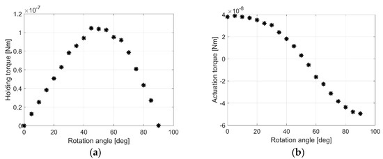 Based on (4), the holding torque and actuation torque were independently defined and computed. In particular, the holding torque is defined as