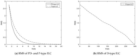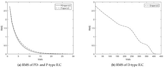 RMS of PD-, P- and D-type ILC for uncertain system.