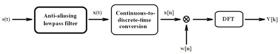 Scheme of steps for processing a signal from its original form to its value discretized by the discrete Fourier transform (DFT).