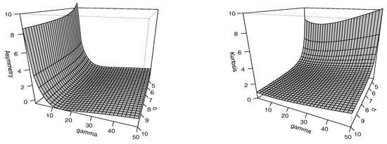 Let , then the asymmetry coefficient, () and the kurtosis coefficient () for and are, respectively,