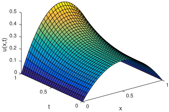 Numerical solution of the problem (74) using and . We used the method presented in this work with computational parameters and .