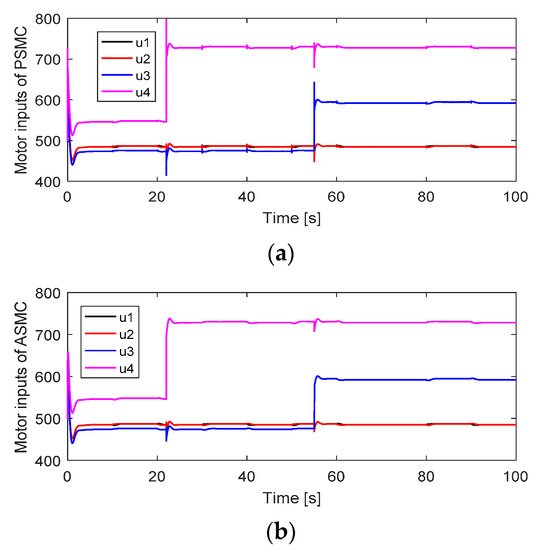 Motor inputs: (a) Motor inputs of ASMC; (b) Motor inputs of SMC.