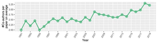 Pretty much as industrial production relies on teamwork, academic literature is increasingly the result of the collective work of several researchers [54]. Figure 8 shows that research on AI-GDM follows this trend too.