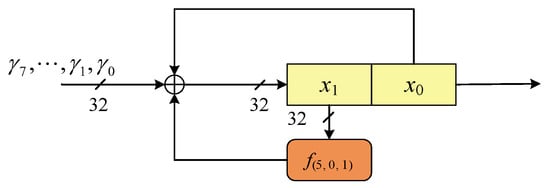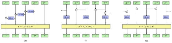 In ACE, the state is divided into five words. The three of them will be transformed by  and they are structural equivalent. In this section, we consider the cases that the transformed three words being XORed to another three words and give three XOR structures that are safer than the original one as Figure 5 shows.