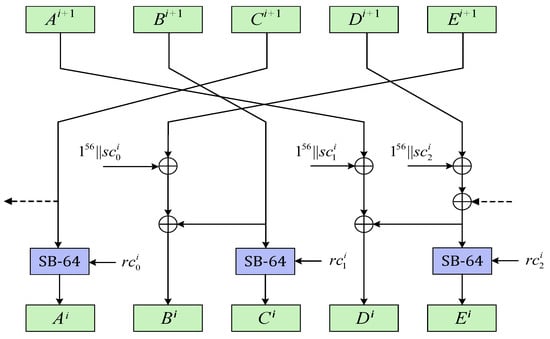 Let , where  and . SB-64 iterate the Simeck-64 block cipher for 8 rounds, with round constant  taking place of key addition.