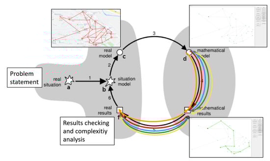 Specifically, the sequence of activities begins with: (a) a presentation of the problem statement, and a discussion promoted to determine (b) the situation model of each of the students and agree (c) the real model to work on. This initial modelling process allows for the transition to mathematical and computer work using the GbPExplorer. In (d), the mathematical model is implemented to work on the software tool. Each of the possible resolution techniques is implemented to generate (e) mathematical results that are (f) validated and checked for each of the techniques, allowing a comparison of methods from the point of view of computational complexity. All of the steps are detailed below.