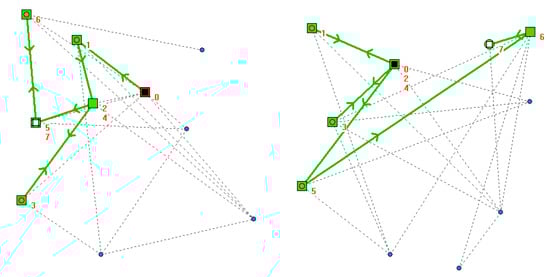 Figure 15 shows an example of two different graphs with the same initial constrains (10 vertices, 20 edges, and five visits) with different runtimes and the GbPExplorer allows for them to realize it.