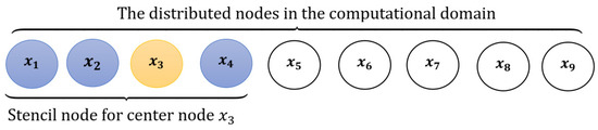By deriving the RBF expansion of in Equation (8), the weighted differences of stencil node can be obtained from the system as: