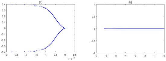 The eigenvalues of (a) and (b) for , , and in Example 4.