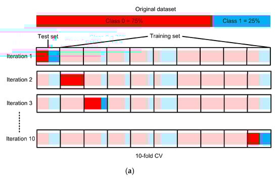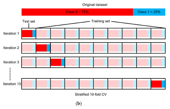 Model validation (a) 10-fold cross-validation (CV) and (b) stratified 10-fold CV.