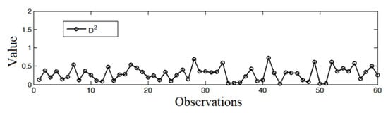 where and are the mean and covariance calculated from the multivariate variable . Similarly, a multivariate variable is generated with the composition = = [Cy, Cy]. For the variable , a multivariate variable generated with the composition = [N, N] was selected. Figure 5 shows the Mahalanobis distance calculation between the observations of and , of .