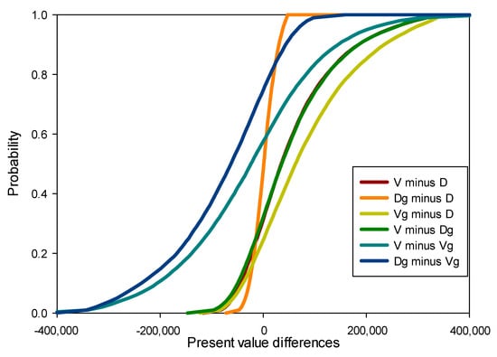 The sensitivity analysis is mainly useful for situations such as the one under analysis here, where the correct choice of the discount rate and its variability directly affect the decision to invest [59,60,61]. Some authors have used applied sensitivity and the decision tree approach [62]; however, Monte Carlo simulation techniques have been used for risk analysis to a greater extent [63,64,65,66]. For a better understanding of the variability of the discount rate, the value at risk is particularly suitable. It was originally used in the finance sector, but it has also been used in studies on agricultural valuation, as found in Manfredo and Leuthold [67] and Brotons et al. [68]