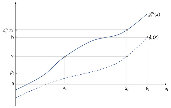 is well defined from Assumption 3 on , i.e., it is nonzero, and its monotonicity follows from the concavity of and . We define: