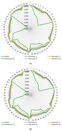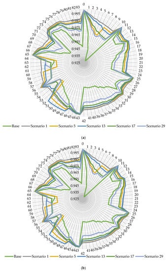 In this work, two performance indices are used to assess the overall operational performance of the studied distribution networks at different scenarios, including the load balancing index (), the aggregated voltage deviation index (), and the aggregated fast voltage stability index ().