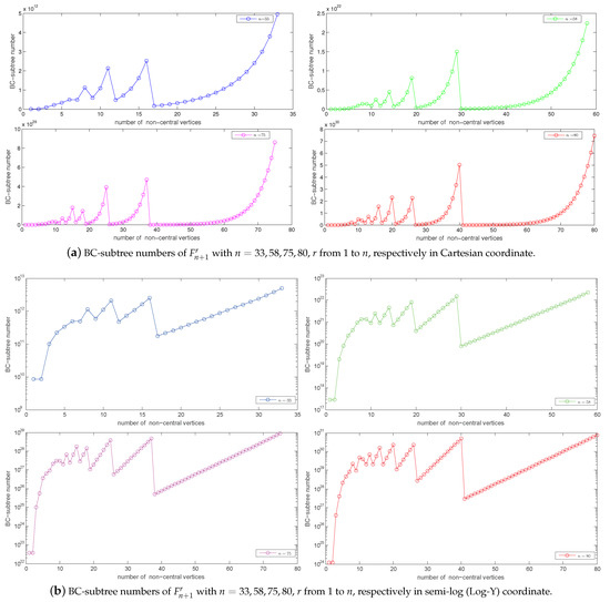 From Figure 3a, it appears that among all , seems to have the second largest BC-subtree number, and the seems to be the third largest BC-subtree number for odd (or sufficient large) n.