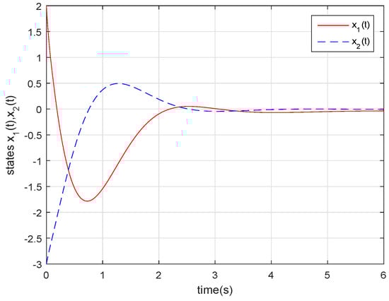 If we take , and have , in (16), then, expression (16) can be described as (6). Therefore, by using Lemma 3, the closed-loop control system (4) under the controller (3) is asymptotically stable,