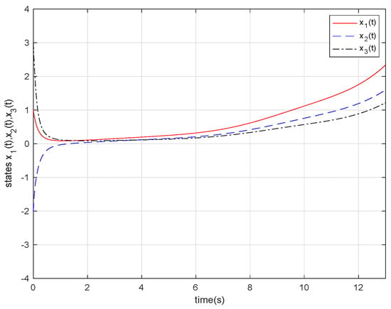 the initial states of Caputo system (5) is defined as , which a continuous vector-valued function on . The function is piecewise continuous in t and locally Lipschitz in x on .