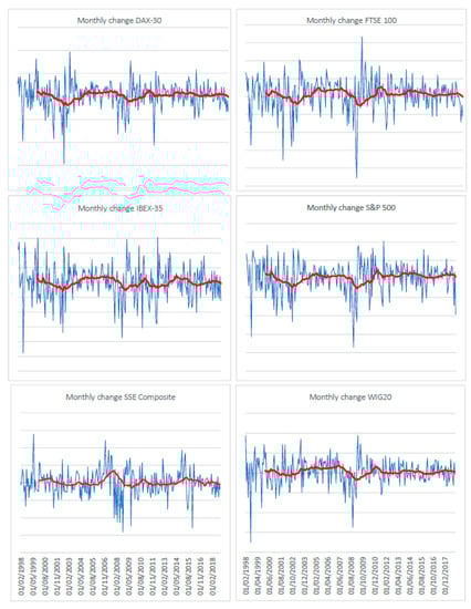 One of the first works that specifically included data from the Polish stock exchange market was an article by Brzeszczyński and Welfe Ref. []. Their empirical results indicated that there was a linkage between the return rates of the WIG index and the rates of return of other global stock exchange indices.