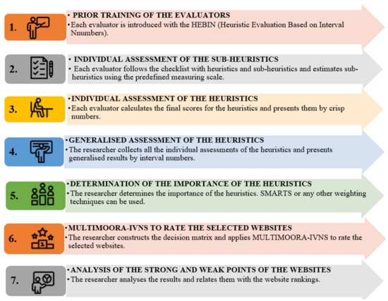 Heuristic evaluation based on interval numbers (HEBIN) methodology consists of 7 stages, each of which is briefly described in Figure 1.