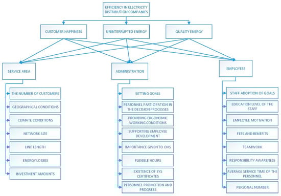 2]. After moving from public ownership to private, energy supply companies started to be exposed to serious competition, which was not in place before. In addition, electricity distribution (energy supply) companies must follow the corporate strategies imposed by the Ministry of Energy and work to reach pre-set efficiency targets in order to ensure customer satisfaction and change public perception towards the companies, as they are no longer public institutions. These energy supply companies have previously been assessed and monitored with respect to financial measures but have never been evaluated with respect to the efficiency of management, performance of operations and customer satisfaction, since they were serving as public companies and were not subject to serious competitions and compliance audits. In order to keep these companies standing firm in the market, all qualitative and quantitative assessments are inevitably required. Following up from this need, this study proposes an approach to identify the performance criteria of energy supply—particularly electricity distribution—companies in performance and efficiency studies as extracted from companies’ daily practices. It is paramount to indicate that the best performance and efficiency studies can be conducted through a bottom-up approach, which significantly involves daily practices. There are few studies that have been done on the efficiency of energy companies in different countries—including Turkey—using data-driven techniques such as data envelopment analysis (DEA) [