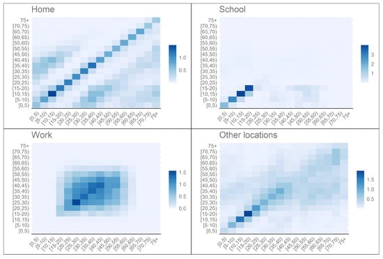 Figure 2 presents the contact matrices for each setting, which correspond to the matrices