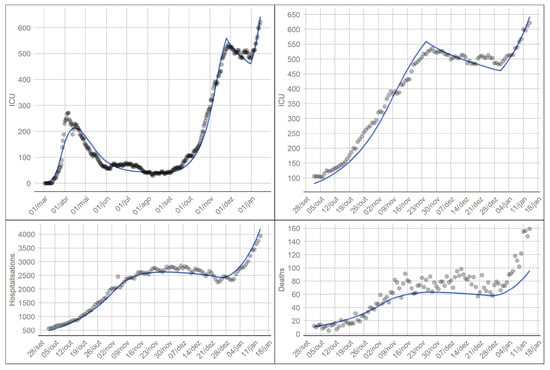 16]. The model shows that the effective implementation of NPIs curbed the increase of new cases and consequently, hospitalisations, ICU cases and deaths. The model’s simulations also indicate that a short lockdown might not be enough to reduce the disease burden on public health services. A combination of a longer lockdown with an effective vaccination strategy might reduce the number of hospitalisations and deaths and help maintain the effective reproduction number below 1.