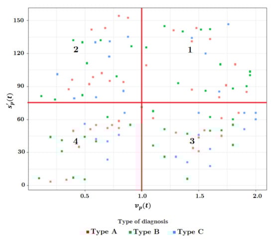 - Classify patients into three groups: Group A: patients suffering from diagnosis of Type A; Group B: patients suffering from diagnosis of Type B; and Group C: patients suffering from diagnosis of Type C (see the three colors in which patients are represented in Figure 2).