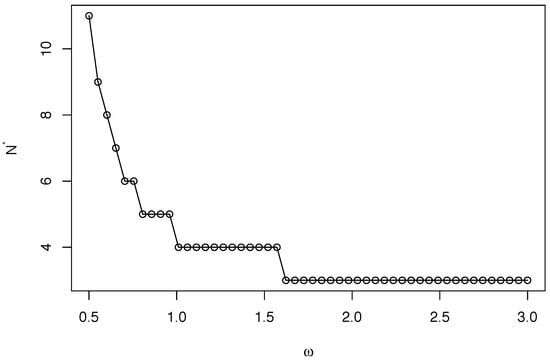Second, I set as in Figure 1 and calculate the optimal sizes for various values of in with fixed to 3. Figure 3 illustrates the result.