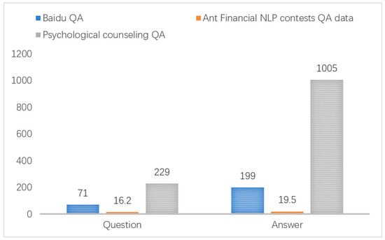 Comparison of the average number of words between psychological counseling QA, Ant Financial NLP contests and Baidu QA.