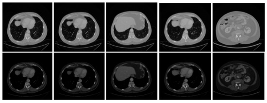 Generally, medical imaging datasets have a noisy texture that causes the ROI to fade out. The noise could include any kind of blotches, irregular spots, unwanted objects, and organs. A medical imaging dataset needs to be preprocessed first to make it suitable for further experimentation. This step is mandatory to achieve enhanced images, as raw data is noisy most of the time and cannot be processed further. It is very important to enhance ROIs by eliminating unwanted noise; for this purpose, various researchers have proposed multiple techniques. Mostly, contrast enhancement is used to improve the image quality. This is done using windowed Hounsfield unit values in the range [−100, 400], which results in an enhanced image without any kind of noisy blotches, irregular spots, organs, and unwanted objects. We have used this preprocessing step over the dataset to enhance the visibility of ROI and achieve a better image quality. This preprocessing technique is also followed by other researchers [27,29]. Figure 2 shows some samples from the 3DIRCADb dataset before and after the enhancement operation was applied.
