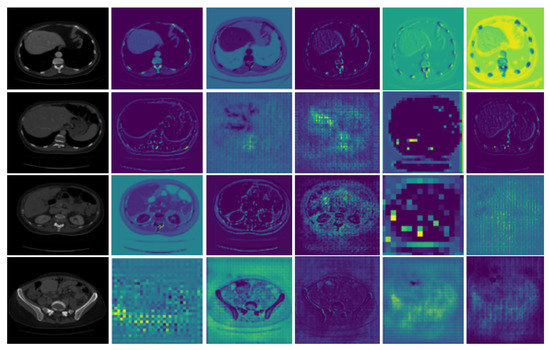 Moreover, during training, the input image of the CT scan is passed through different layers of the model, which includes convolution layers and pooling layers. The output of each layer takes the form of activation maps. The visualization of those activation feature maps of some intermediate layers of our proposed model is also shown in Figure 5. These visualizations show how the model depicts the contextual information of the image layer by layer.