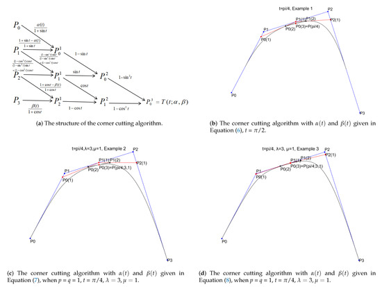 Moreover, vanishes two times at and vanishes two times at 0 (counting multiplicities as far as possible up to 2). Therefore, by Definition 2.10 of [28], we can see that the system is precisely the normalized Bernstein basis of the space span , which indicates that the generalized quasi cubic trigonometric Bernstein basis is totally positive and possesses optimal shape preserving properties. In [23,24,25], the concept of normalized B-basis conincides with the normalized Bernstein basis, which corresponds to the optimal shape preserving properties.