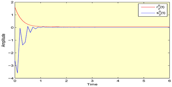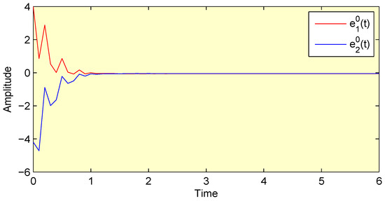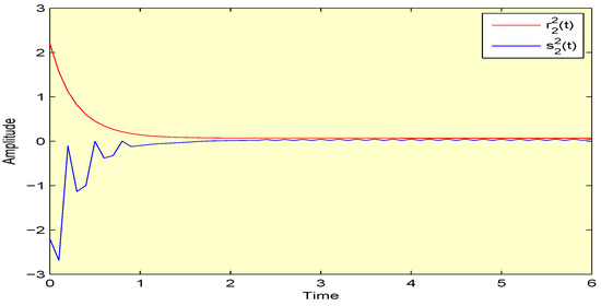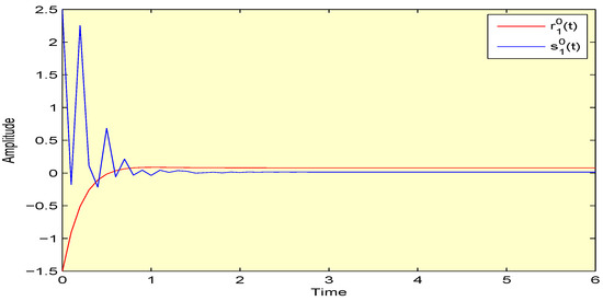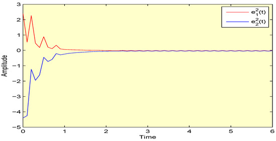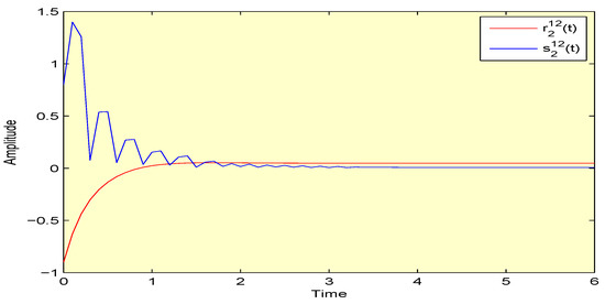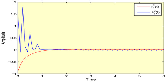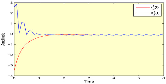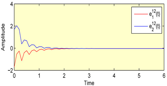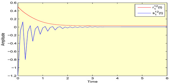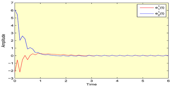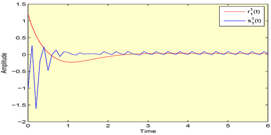 To sum up, we have shown that all conditions in Theorem (4) are satisfied. The drive-response models (1) and (3) can achieve synchronization in finite-time with controller (13). The following is a detailed explanation of Figure 1, Figure 2, Figure 3, Figure 4, Figure 5, Figure 6, Figure 7, Figure 8, Figure 9, Figure 10, Figure 11 and Figure 12. Figure 1, Figure 2, Figure 4, Figure 5, Figure 7, Figure 8, Figure 10 and Figure 11, respectively, show the time responses of the states of the drive-response models (1) and (3). Besides, Figure 3, Figure 6, Figure 9 and Figure 12 disclose the time responses of the states of the error systems (11). From Figure 3, Figure 6, Figure 9 and Figure 12, it can be seen that model (7) synchronize with model (9) in finite-time through the controller (13) with the given initial values.