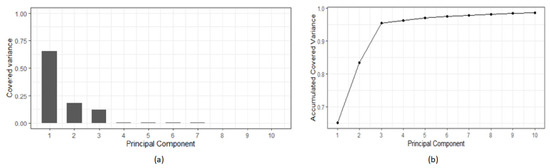 Principal component analysis results of patient P05 data: (a) Covered variance; (b) accumulated variance.