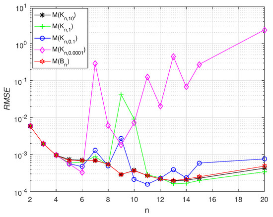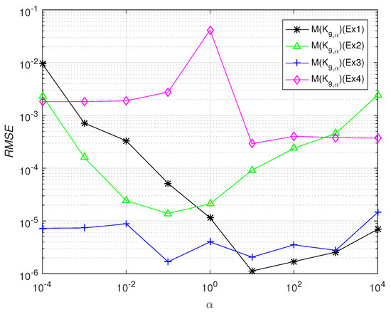 Theorem 8. Assume that the conditions ofHypothesis Iare satisfied and the solution ofRVK1belongs to for some Consider the linear system given in (71) where and is the matrix in (39) and . Furthermore, as in (74) and B is as in (41) and Aditionally and and let for and , where and Further, If and thenhold true where, is the regularization parameter and are as in (47) and (48), respectively. Furthermore, and and are as given in (39). Proof. Proof is analogous to the proof of Theorem 7. □