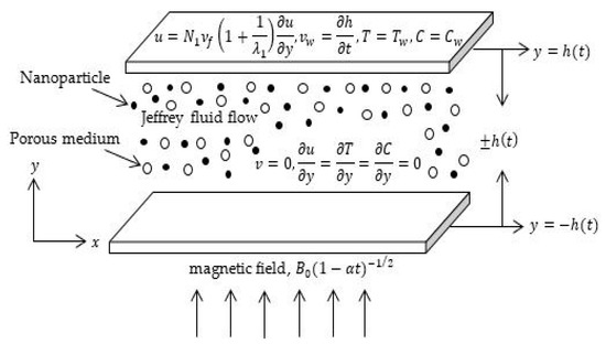 Figure 1 illustrates the coordinate system and geometrical model for the squeeze flow of the Jeffrey nanofluid.