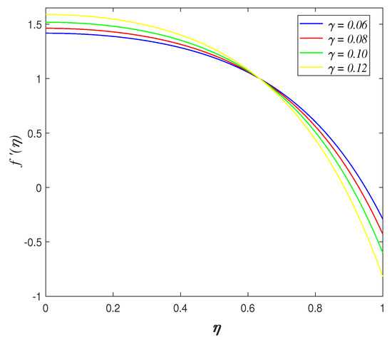 Figure 15. Physically, the slip condition at the upper plate is considered when the velocity at the plate and the fluid velocity nearer the plate is different. The velocity increases for