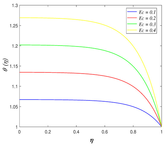 rises. The presence of viscous dissipation is denoted by the Eckert parameter. High values of