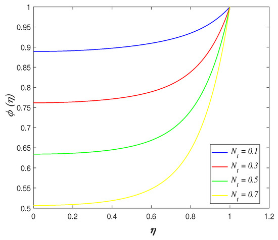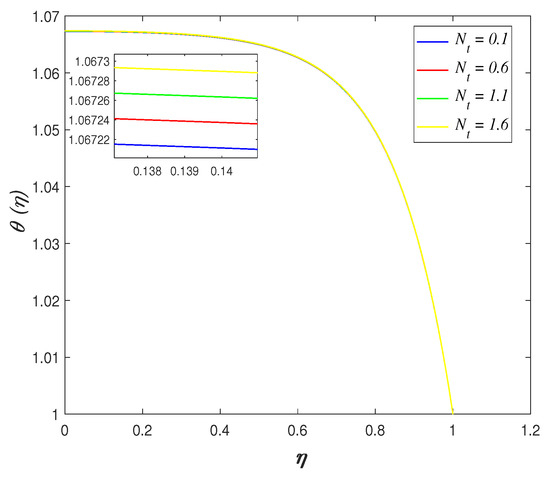 . The thermophoretic force is imposed on nanoparticles when there is a temperature difference within the flow and the upper boundary. The kinetic energy of nanoparticles increases due to the thermophoretic force. This phenomenon elevates the temperature profile.