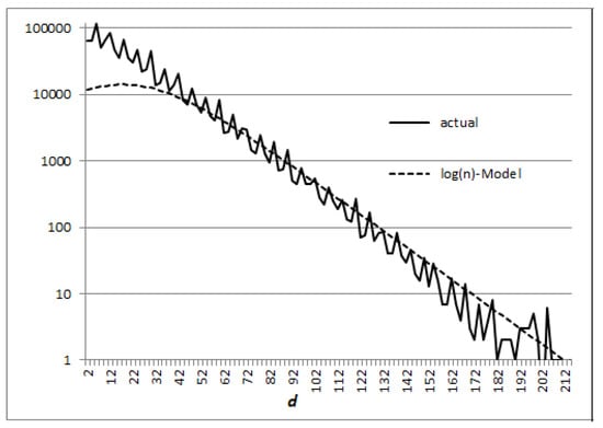 Table 5 shows some examples of estimate of , calculated through the heuristiclog(n)-Model with , for different orders of magnitude.