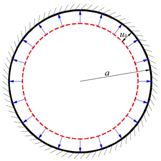 Obviously, the radial displacement u is finite at r = 0, therefore it can be found from Equation (19) that C2 has to be equal to zero. Further, with C2 = 0 we can, from Equation (20), obtain C1 = u0/a. Therefore, the special solution of Equation (17) is