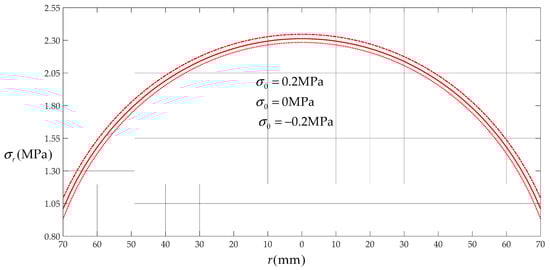 Variation of with when takes −0.2 MPa, 0 MPa and 0.2 MPa, respectively.