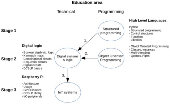 The schools in the Czech Republic follow the ISCED hierarchy. Secondary technical schools (sometimes called high professional schools) are typical examples of ISCED 3 (upper secondary education, ISCED 97 3A, ISCED 2011-P 354) schools in this system [1]. These schools prepare the students for certain professional/technical areas. These students are mostly aged between 15 and 18 years. From the ontogenetic perspective, it is a stage of late adolescence of a person framed by the ages 15 and 20 years. It is also a period that is suitable for professional training. It is the right time to develop abilities, knowledge and to gain important competencies [2]. The topic of the education system in Czechia itself is very complex; therefore, it is not possible to describe all of its aspects here, but it is necessary to mention that the elementary as well as secondary schools operate their curricula based on the RVP (Framework Educational Programs [3]). When selected and approved by officials, the schools have to incorporate the programs into their own school educational program(s). One of many of these programs available for secondary technical studies is a framework program named Information Technology (IT). The schools have to follow up the framework programs used in the school educational program, but they also have the possibility to extend the education in their program accordingly. If we mention the Information Technology framework program, schools often include the digital logic area [4,5] in their school curriculum documents [6,7] although the topic is not directly included in the frame educational program for IT. The important role of digital logic in the computer science curriculum is mentioned by Connely [8] (Connely et al., 2004). Thus, we can consider computer science as a technical discipline with a deep mathematical basis.