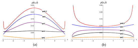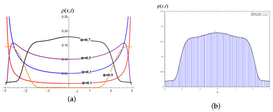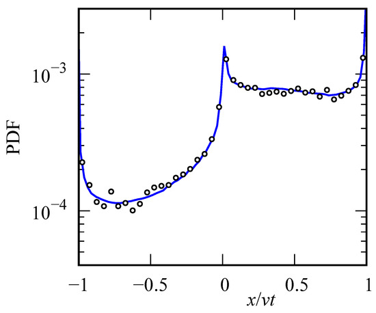 In the case of an arbitrary density with a finite second moment, the asymptotic part of the solution satisfies the telegraph equation. In References [10,11,12], the authors investigated one-dimensional random walks with the asymptotically power-law distribution , . Such a random process is sometimes called a fractal walk. Recently, Lévy flights with a bi-modal distribution of jumps were studied in Reference [13] and the interesting effect of loss of self-similarity was predicted for certain parameters.