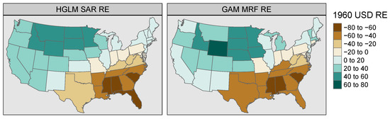 The ML estimation methods for spatial lattice regression models grew from developments in Cliff and Ord [26], soon afterwards refined in Ord [30]. In these and in [8,31], short-cuts were sought but largely rejected, in favour of optimizing the appropriate likelihood function. The implementation in spdep uses line search over the single spatial coefficient, calculating the other coefficients once that is found. The development in [26] only addresses the simultaneous autoregressive (SAR) approach, but [32] and the rich literature based on his work prefers to treat spatial lattice regression in a Markov random field setting (conditional autoregressive, CAR), with spatially structured random effects included in an otherwise aspatial model. Reference [33] summarizes these developments and relates the SAR and CAR approaches.