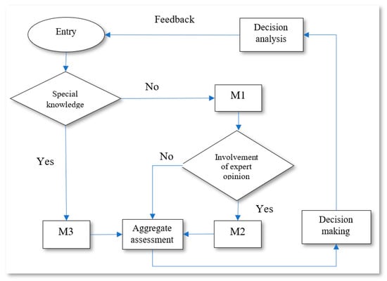 Hybrid models of multiple-criteria decision-making (MCDM) are rapidly emerging as alternative methods of information modeling [14,15]. Fuzzy or hybrid decision-making methods are widely used in many areas that require effective information management when evaluating alternative decisions and making optimal decisions [16,17]. The human experience uses fuzzy systems and, on their basis, a fuzzy initial estimate is obtained [18,19]. Current approaches and advantages of using fuzzy mathematics in decision support systems are investigated in [20,21]. For example, the applied application of fuzzy mathematics in various fields has been studied in [22,23]. In [24], a narrowly specialized approach to evaluating startup project developers using fuzzy networks is presented. In [25], an innovative fuzzy model for assessing expert knowledge is proposed to increase the security of decision-making. Unfortunately, the last two works are not suitable for evaluation by experts in different fields.