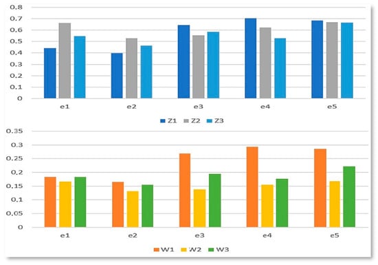 If we have more than one method of assessing competencies, then they will have different levels of importance. In this regard, the DM sets the weight for each method of assessing the competence of specialists , for example, from the interval [12,21]. If there is no need to set weights, then we accept them as equally important. For further calculations, we carry out their rationing [37]: